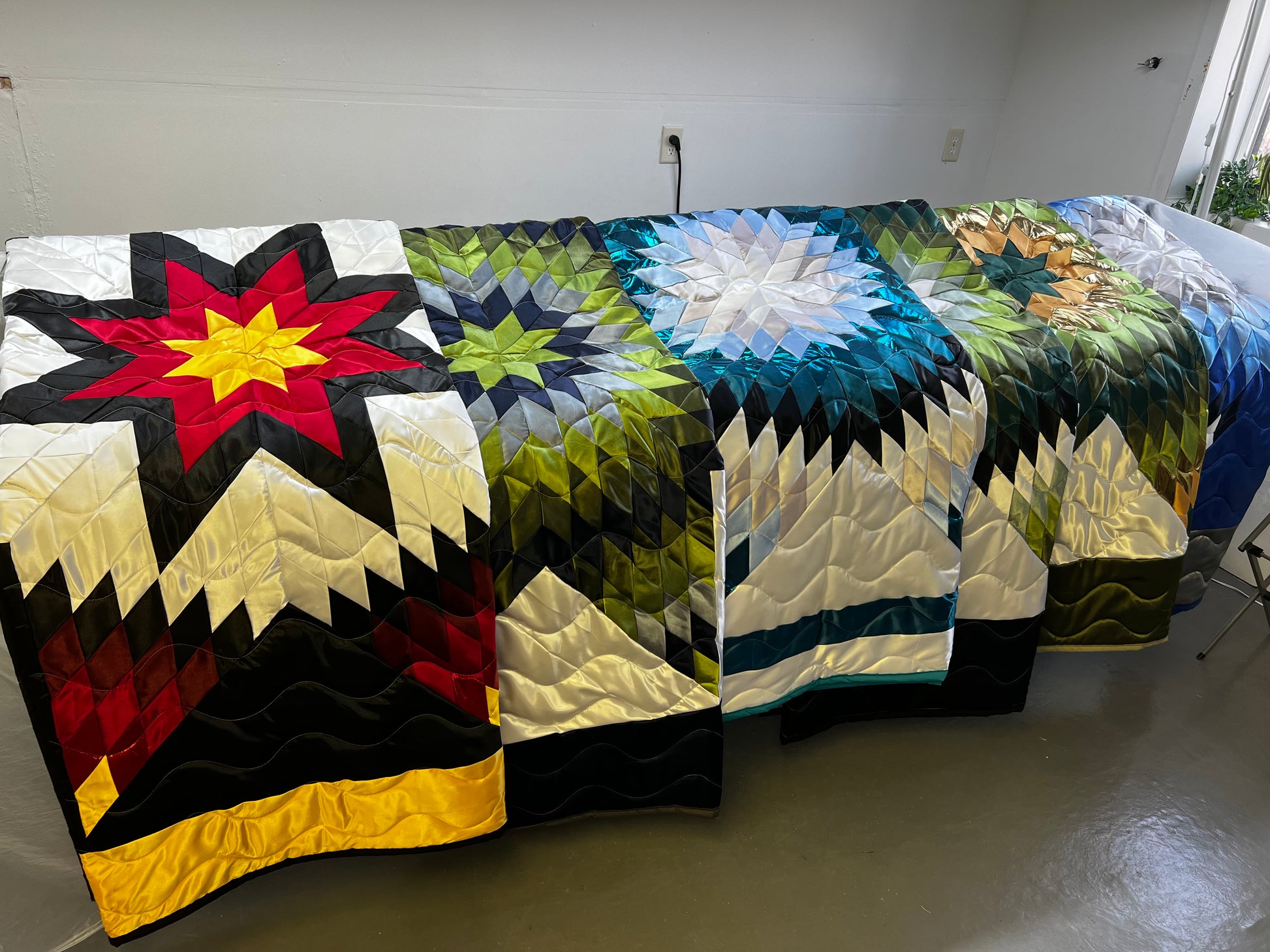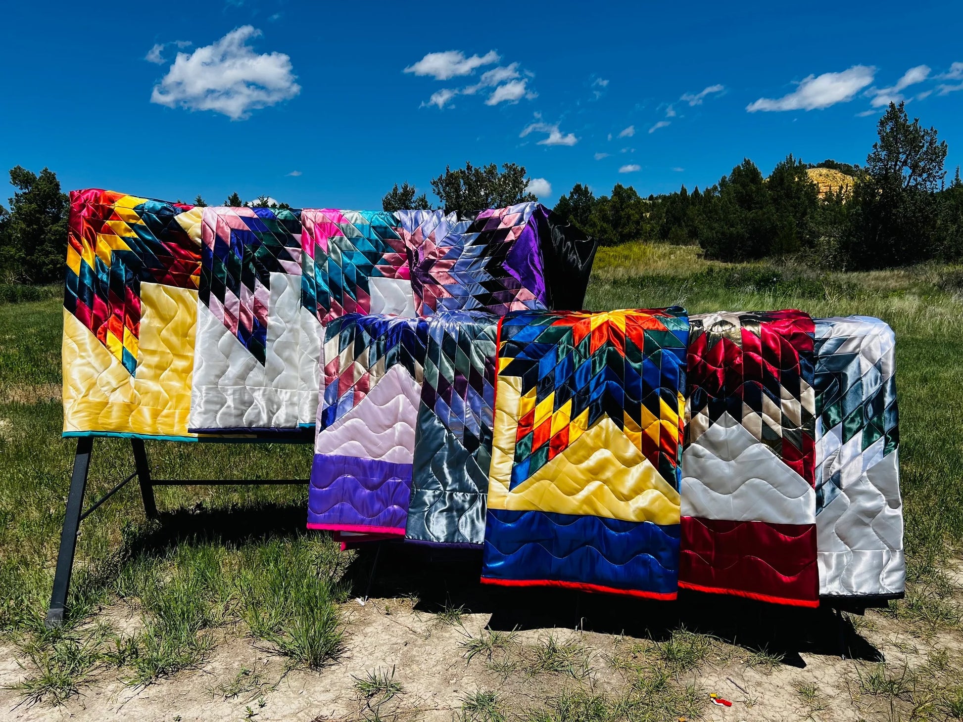 The Bundle of Stars offers a set of 10 handcrafted Lakota Star Quilts (Star Robes) — perfect for schools, organizations, events, or families who wish to honor multiple loved ones in a meaningful way.