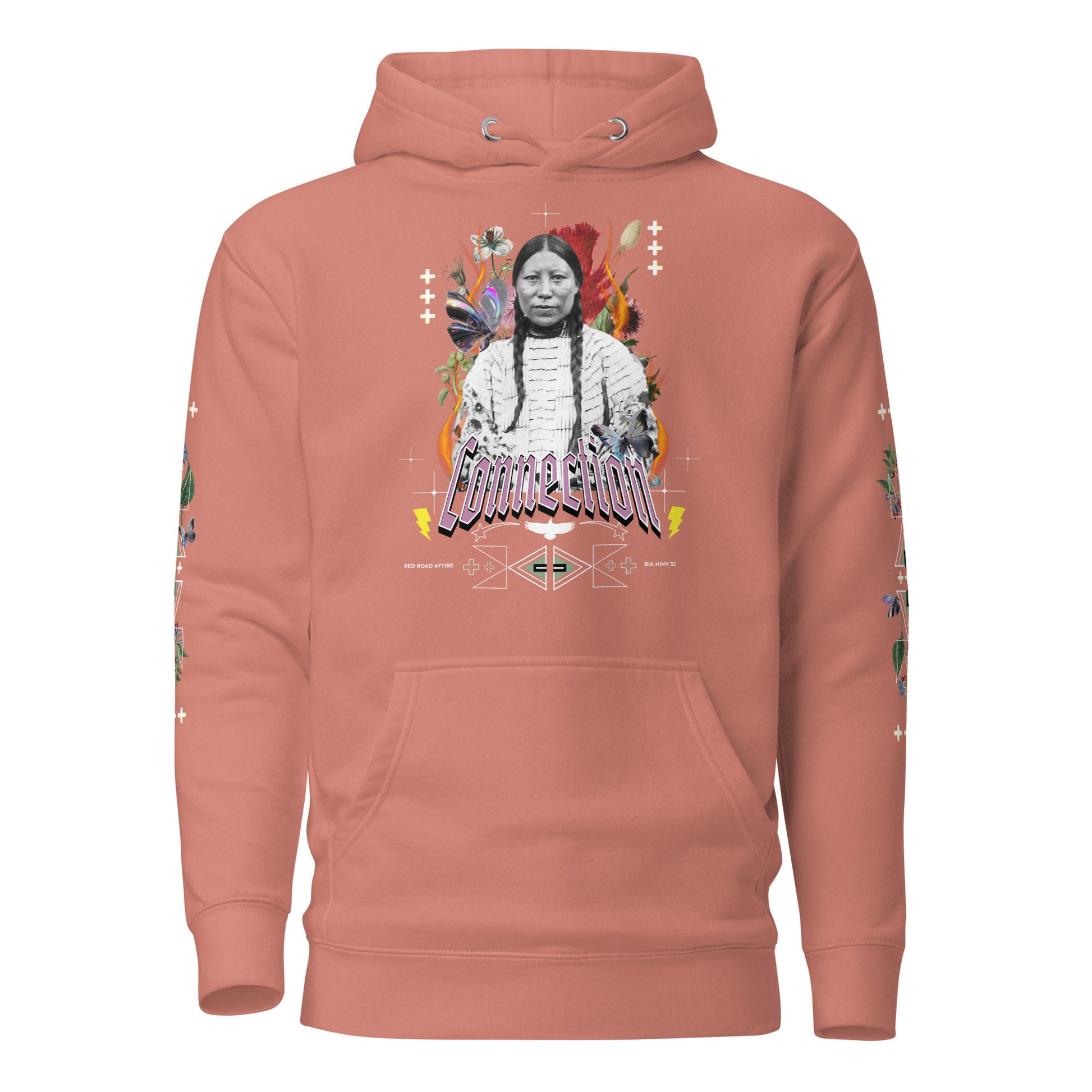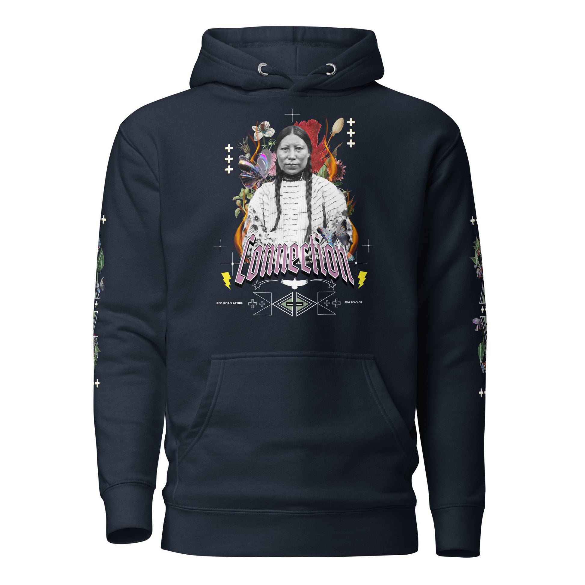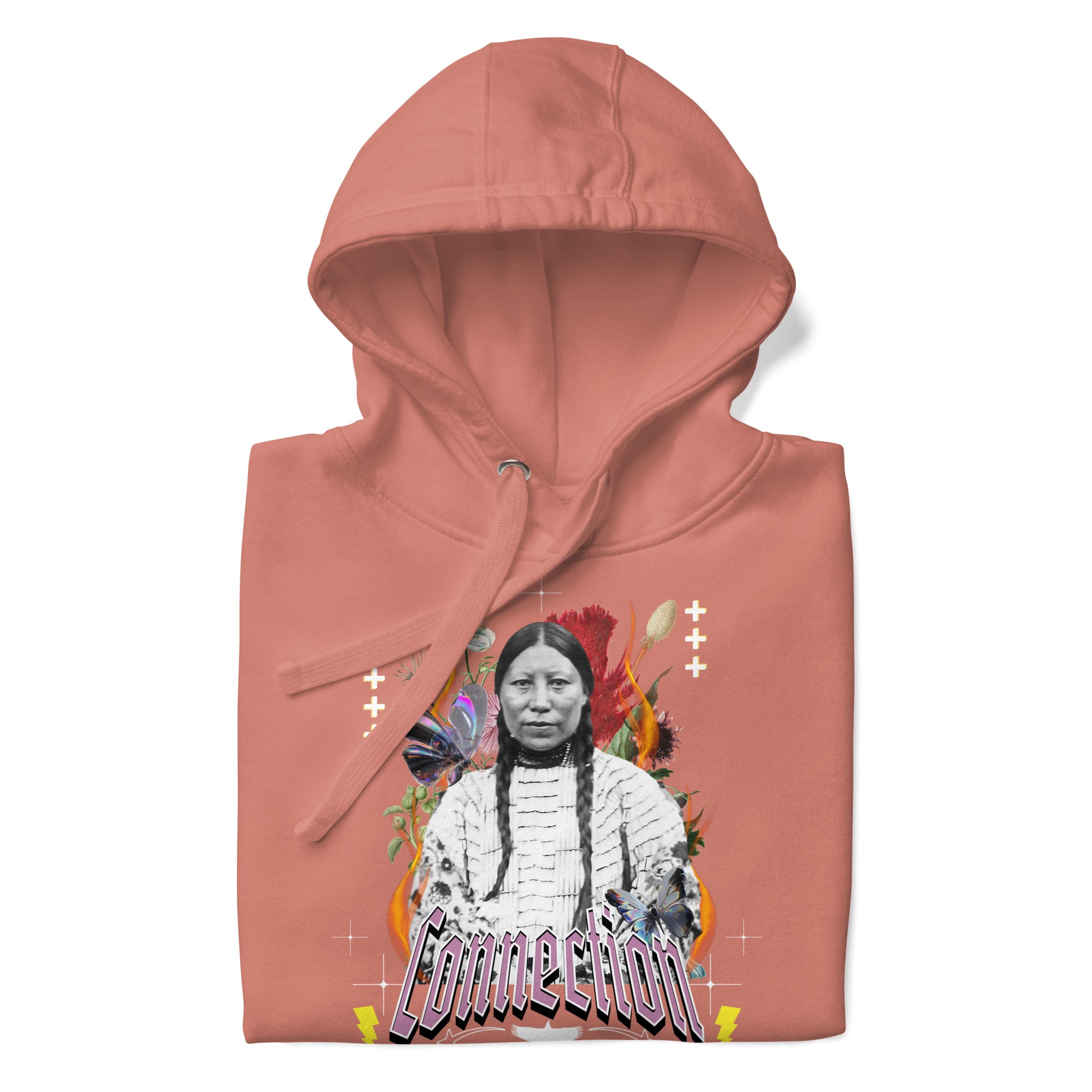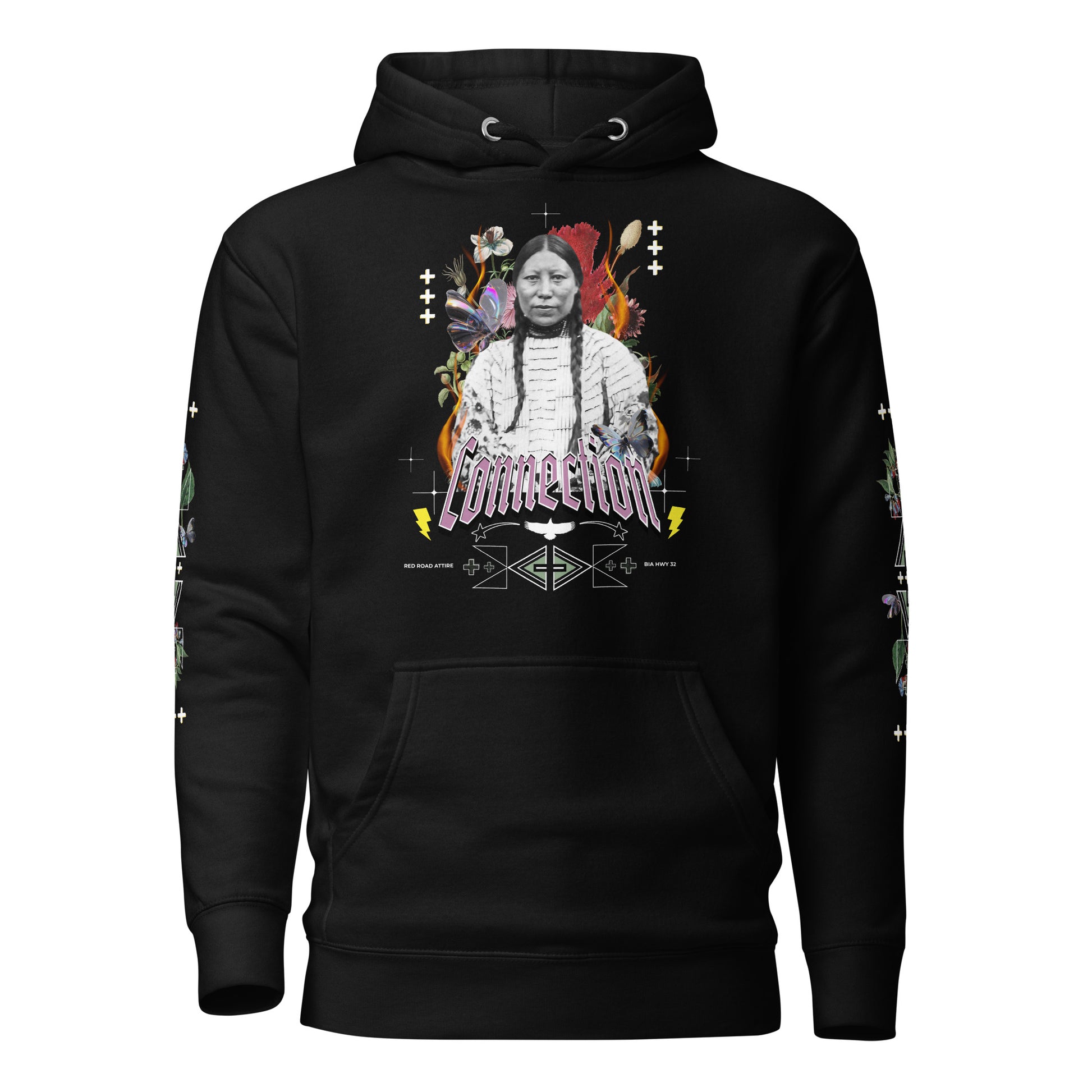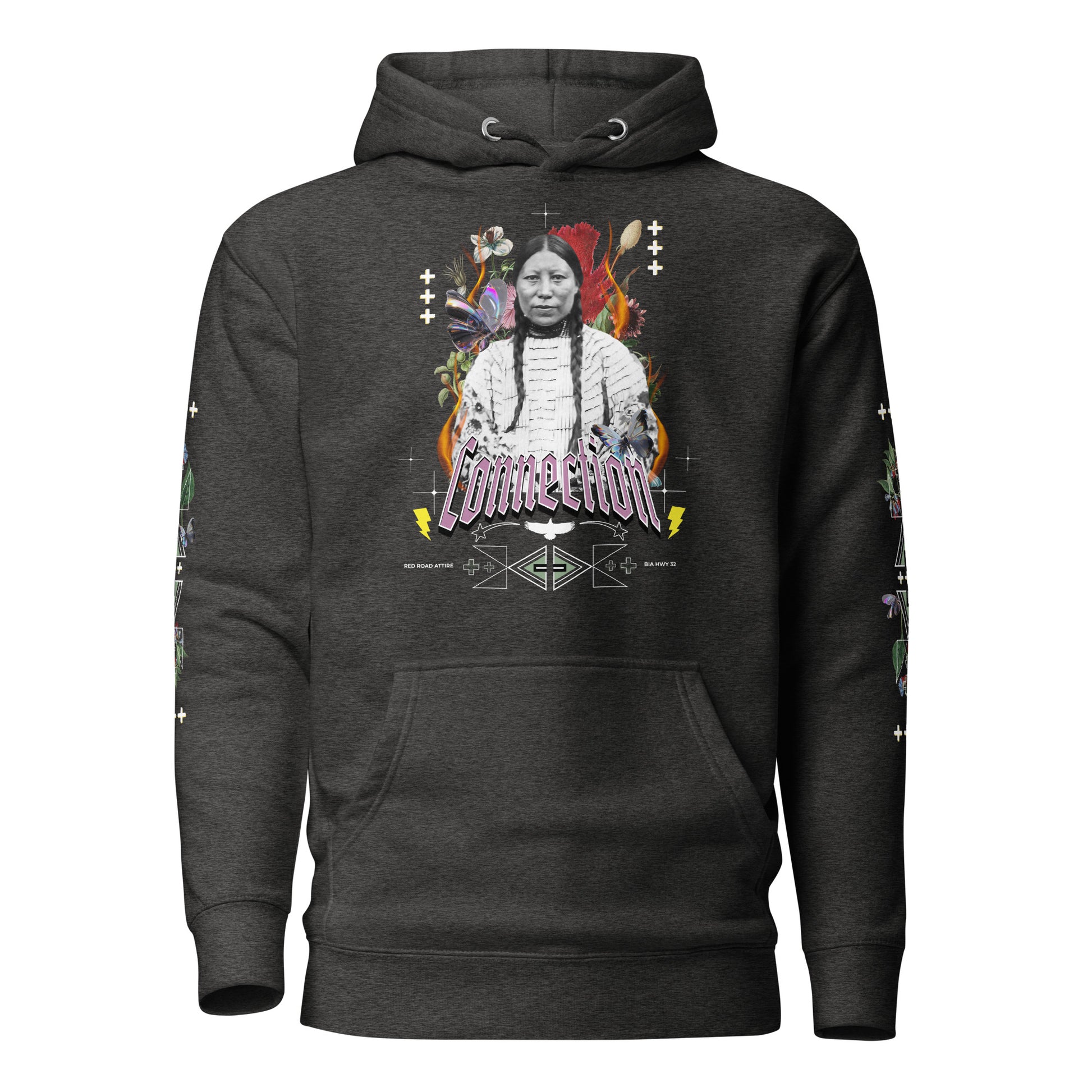 Who knew that the softest hoodie you'll ever own comes with such a cool design. This design features a beautiful historical photo of an Oglala Lakota Woman. She is surrounded by medicines, flowers and creations elements. Connection to the land, animals and elements, is everything, we are it and it is us. You won't regret buying this classic streetwear piece of apparel with a convenient pouch pocket and warm hood for spring evenings and cool summer nights.