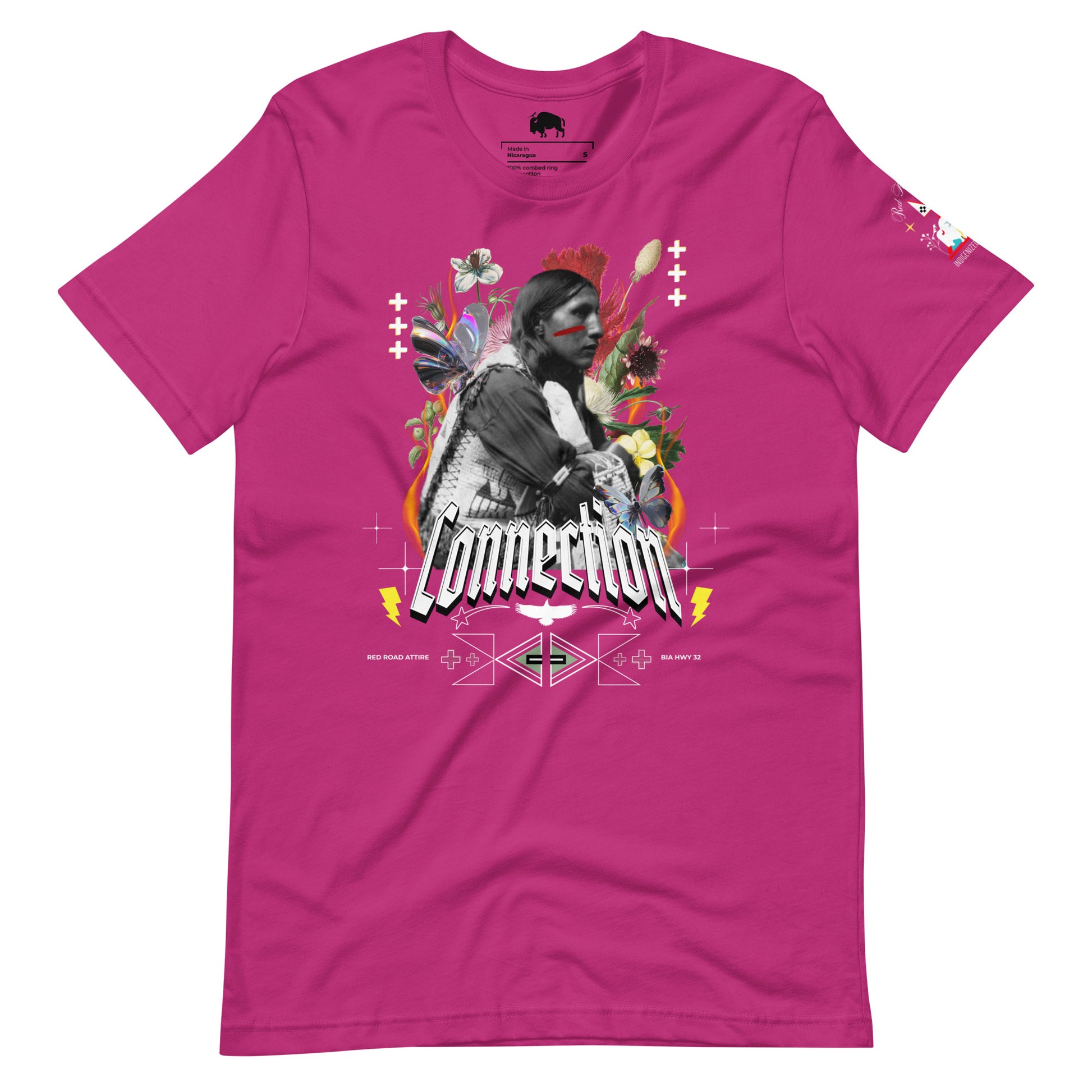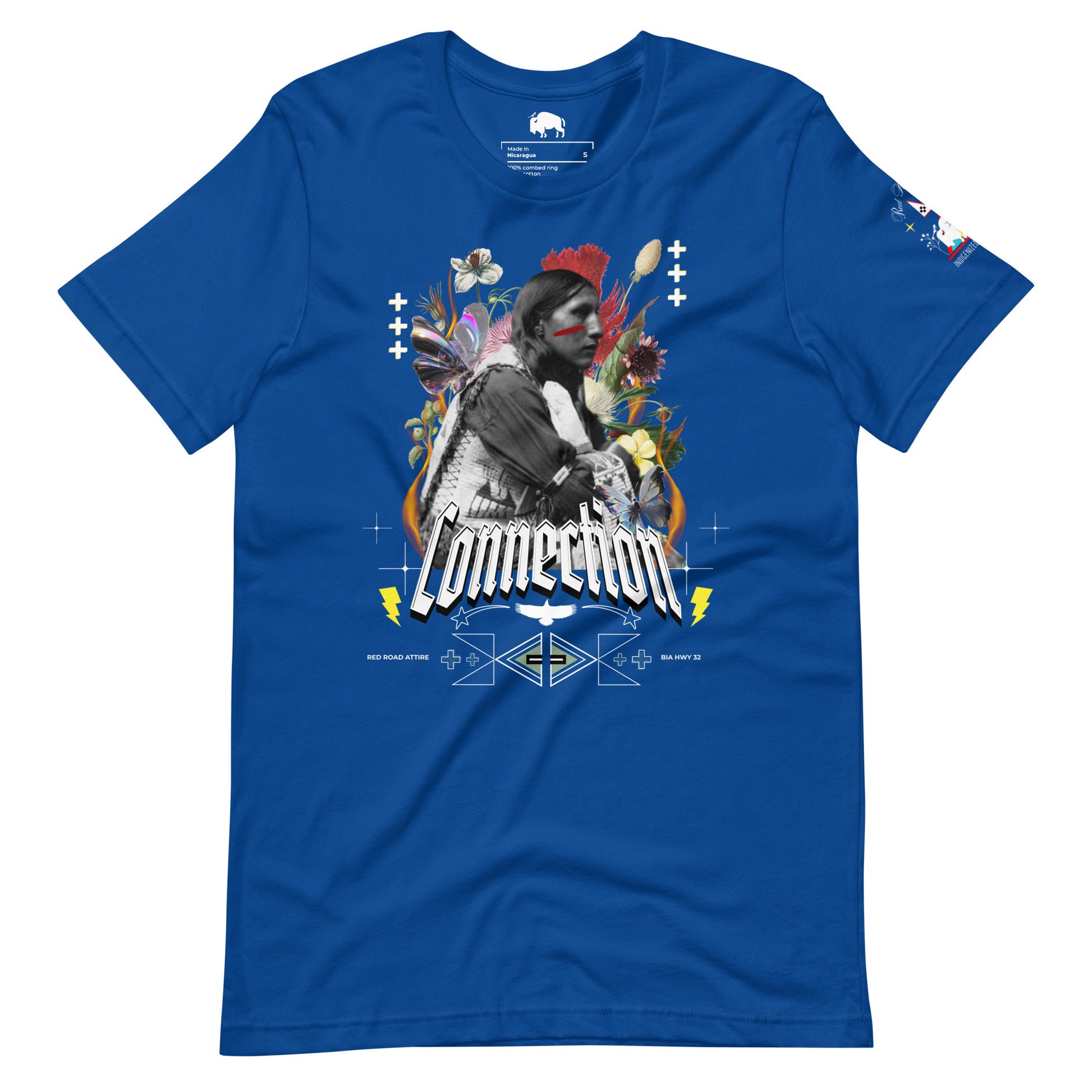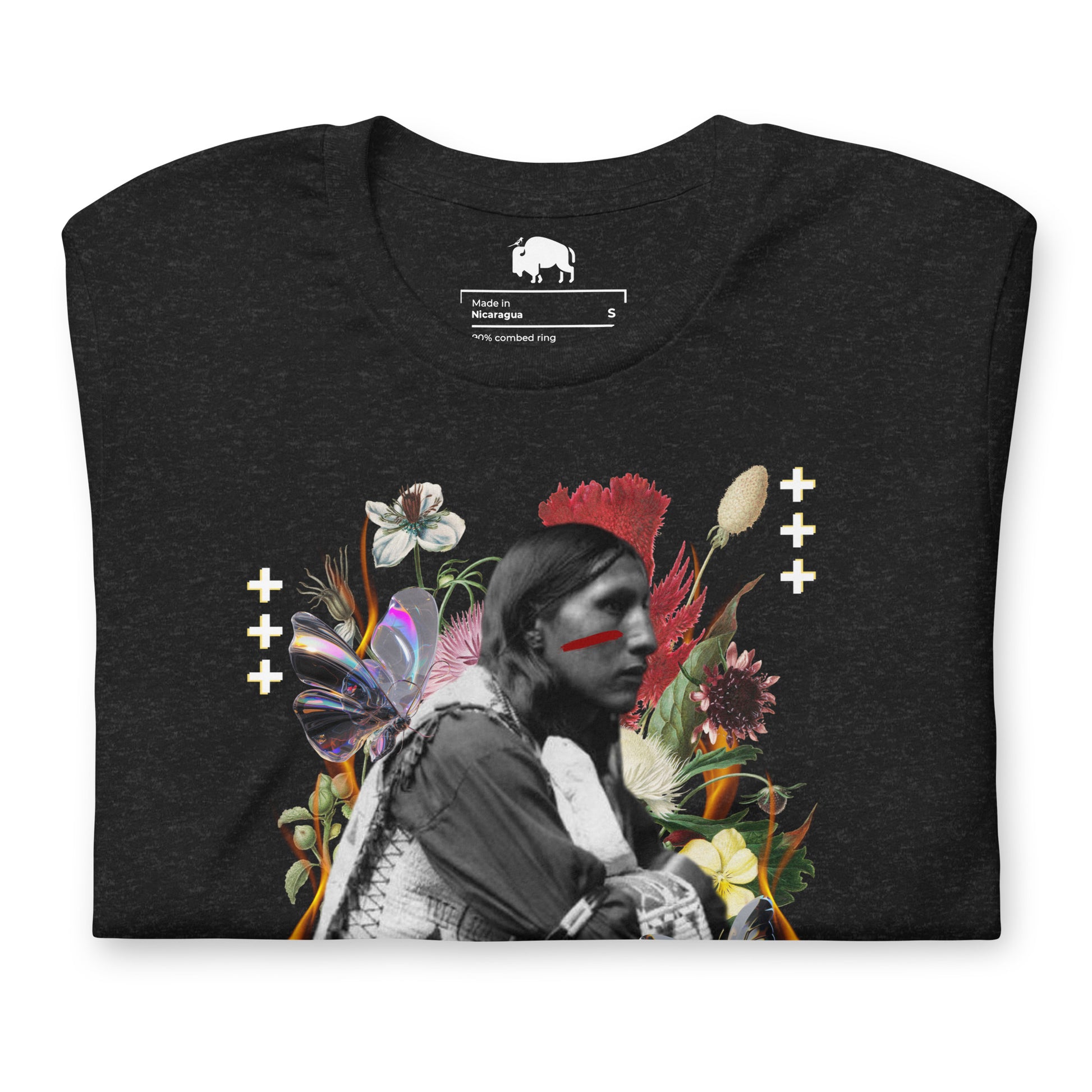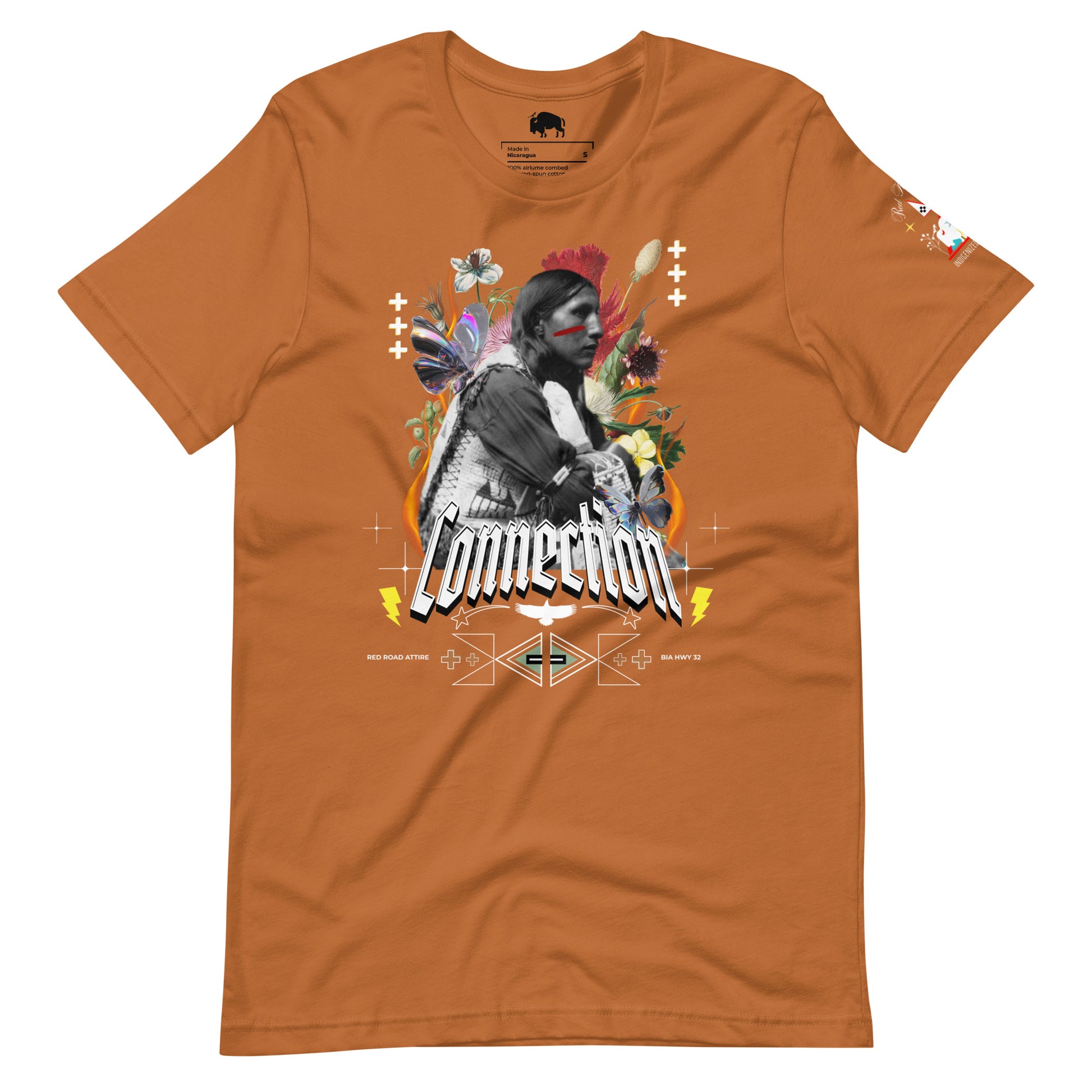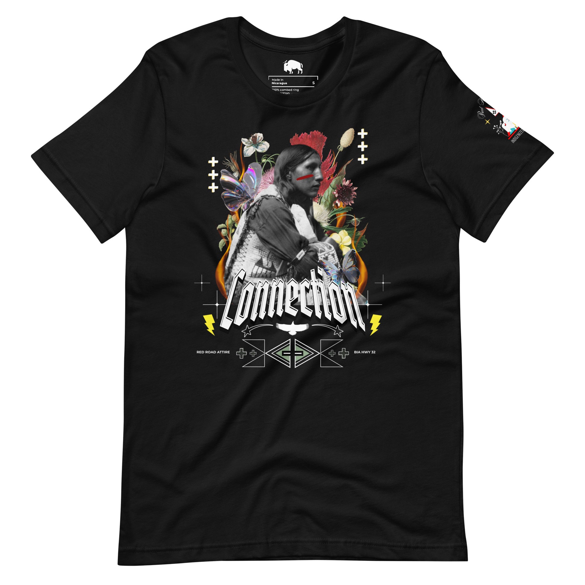This t-shirt is everything you've dreamed of and more. It feels soft and lightweight, with the right amount of stretch. It's comfortable and looks good one everyone. even cooler This tee features our Connection to all things sacred design. We recognize our connection to Mother Earth, Fire, Water, Air and all life that dwells upon creation. We say it not only with out voices but with what we wear. This design features Oglala Lakota Ancestor Poor Elk.